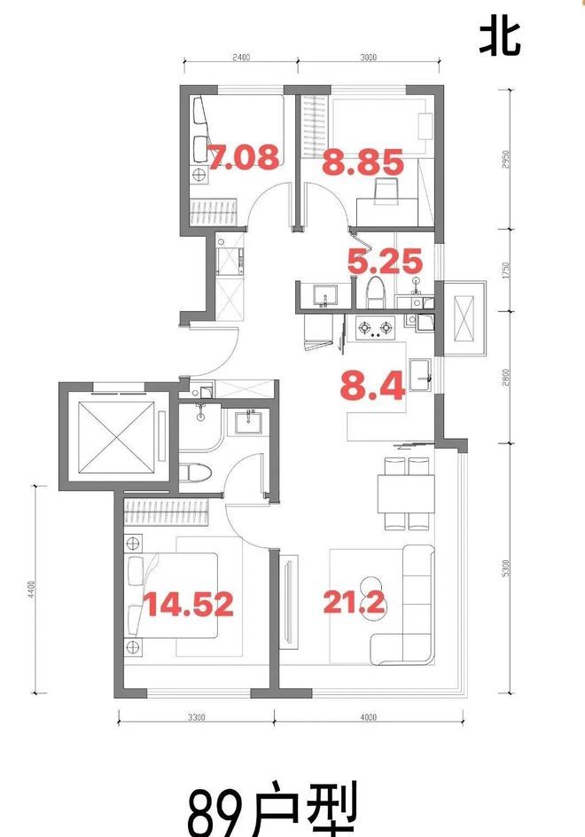 ,客厅是最大亮点,拥有270°采光,仅客厅飘窗的长度就近9米,性价比很高。餐客厨一体而且视线毫无遮挡,很有大平层的既视感;主卧套房设计,有独卫。这款也是期房阶段卖的最好的户型。