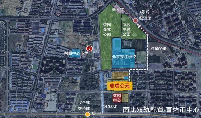 从北侧临河里站出来有2座公园+2个艺术馆,其中梨园城市森林公园近22万平,是遛弯散步的好去处。